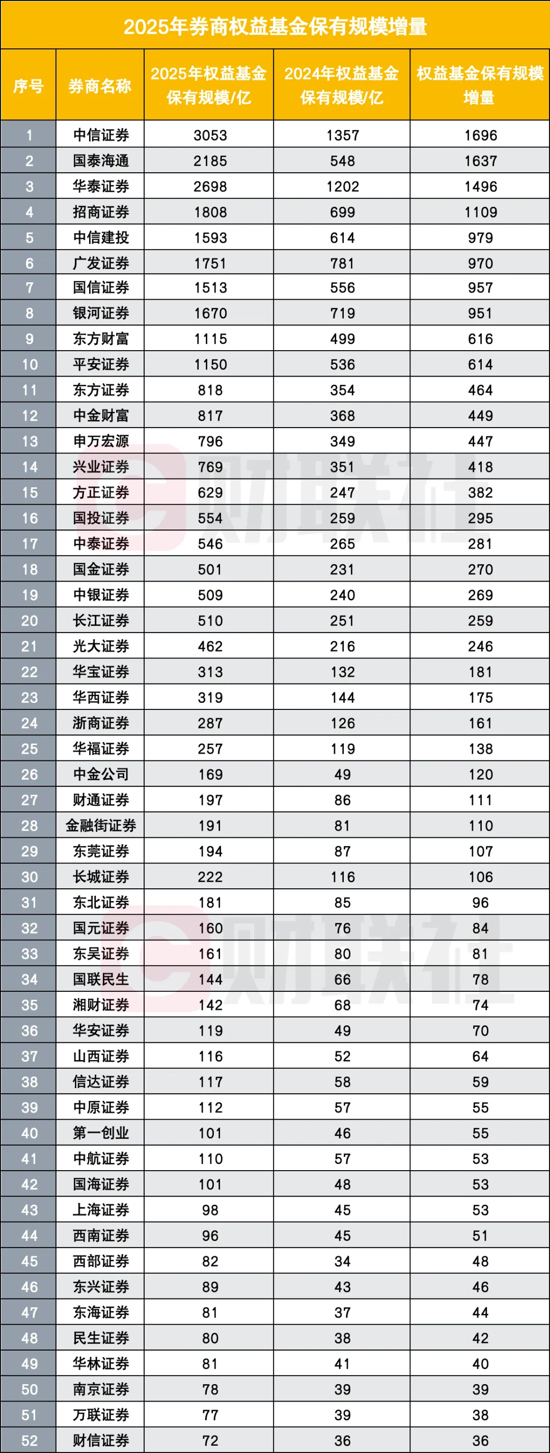 ③2025全年权益基金保有规模增量TOP20券商浮出水面。