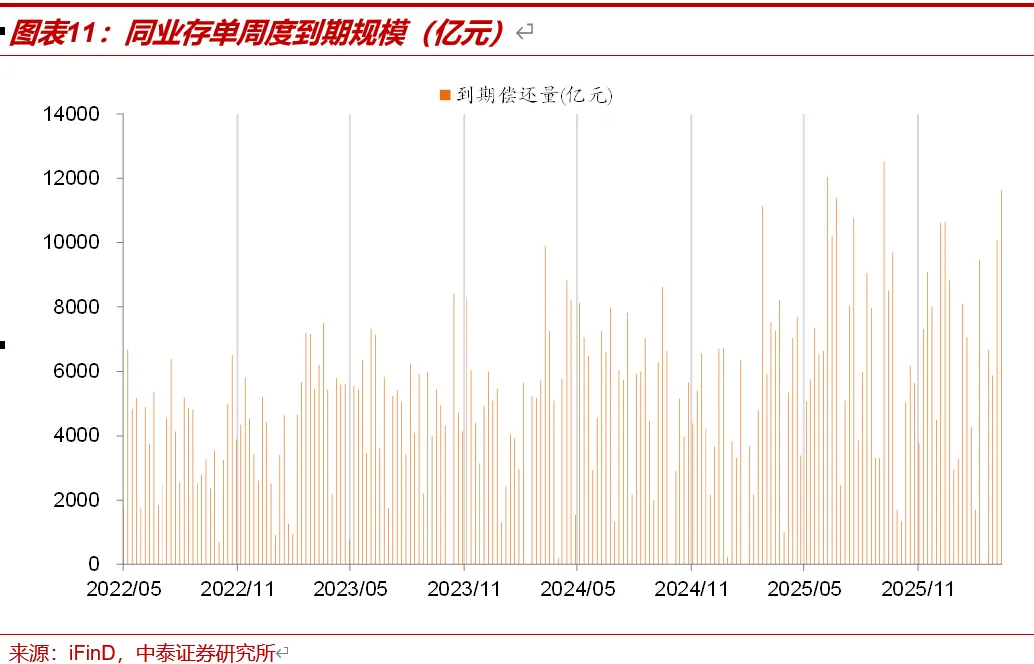 本周存单到期量减少。到期总量10082.0亿元,较上周增加4202.1亿元。新一周(3/16-3/20)存单到期11628.6亿元。