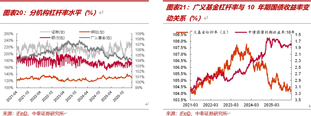 广义基金杠杆率小幅下行。截至3月13日,银行杠杆率、证券杠杆率、保险杠杆率和广义基金杠杆率分别为103.6%、210.7%、130.5%、104%,环比3月6日分别变动0.08BP、-20.93BP、0.75BP、-0.23BP,截至3月13日分别位于32%、35%、78%、1%历史分位数水平。