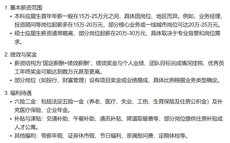 最近,部分国内头部大券商已敞开大门,咱留学生进去就是高起点 + 稳发展,薪资体面、福利拉满,妥妥的 “钱途” 无量,这波机会再不抓住真要亏了!