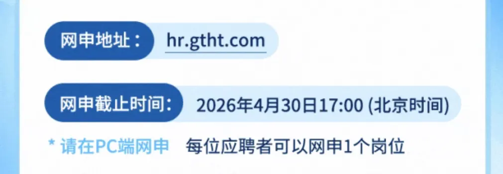 ⚠️ 重要提醒:网申截止时间是4月30日17:00,每位应聘者只能网申1个岗位。留学生要提前准备好学历学位证明、成绩单、实习证明等材料,学历认证可后续补充,别错过报名时间。