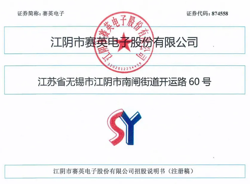 3月17日,江阴市赛英电子股份有限公司(以下简称:赛英电子)披露北交所IPO招股书注册稿,保荐机构东吴证券,保荐代表人孙虎、夏建阳,会计师事务所为中汇会计师事务所。