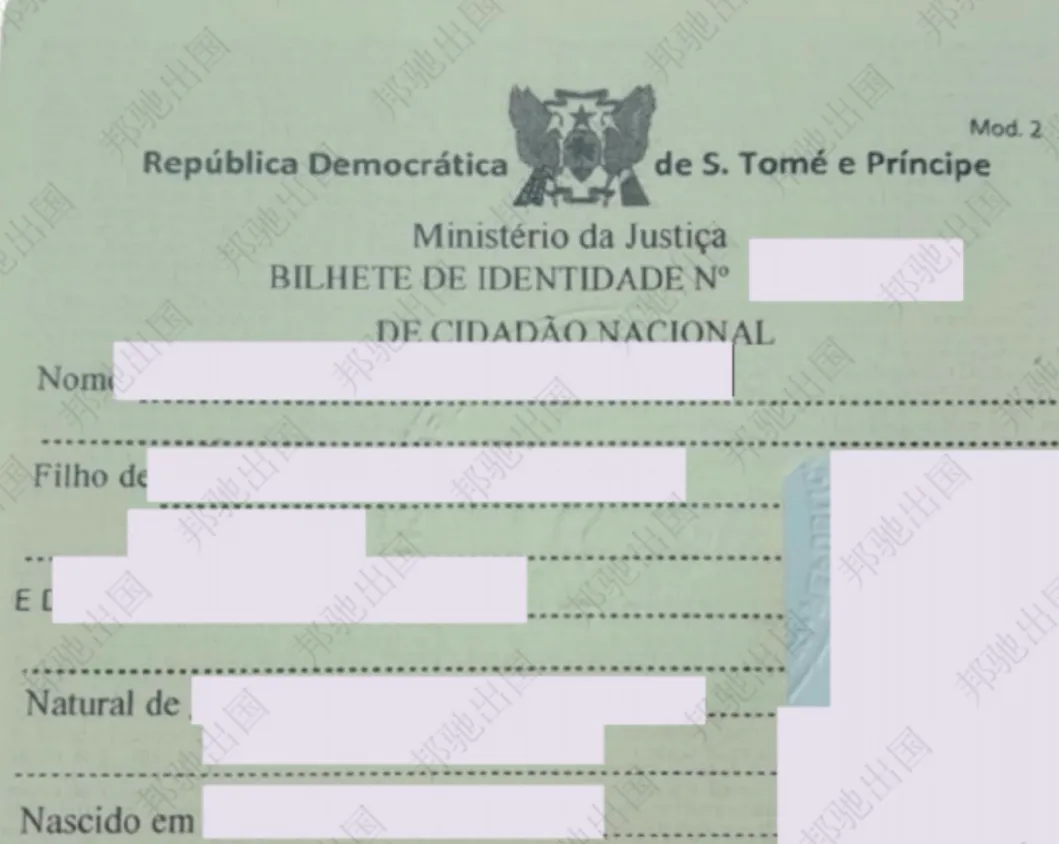 (邦驰出国客户收到的圣多美身份证样本)