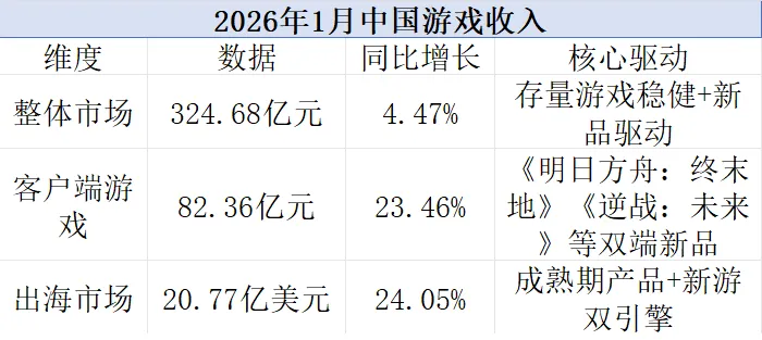 根据最新数据,26年1月中国游戏市场交出了一份成绩单: