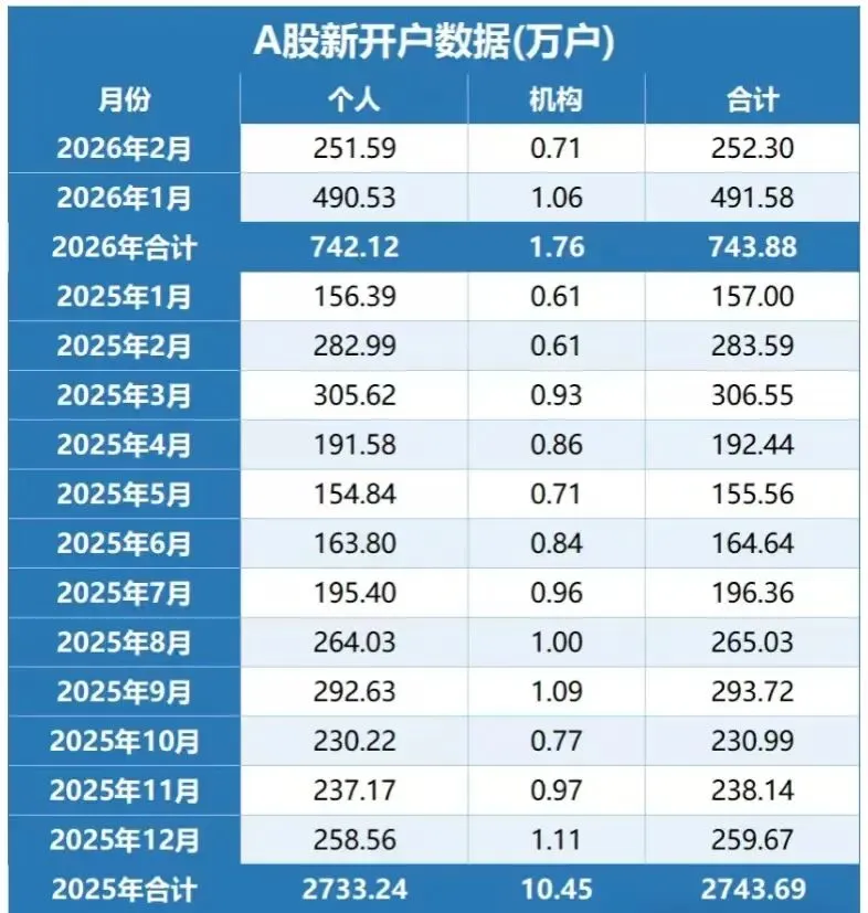 2026年开年,这组来自交易所的数据彻底点燃了市场。一场由“存款搬家”引发的开户潮汹涌而来,券商之间的“佣金战”也随之进入白热化。