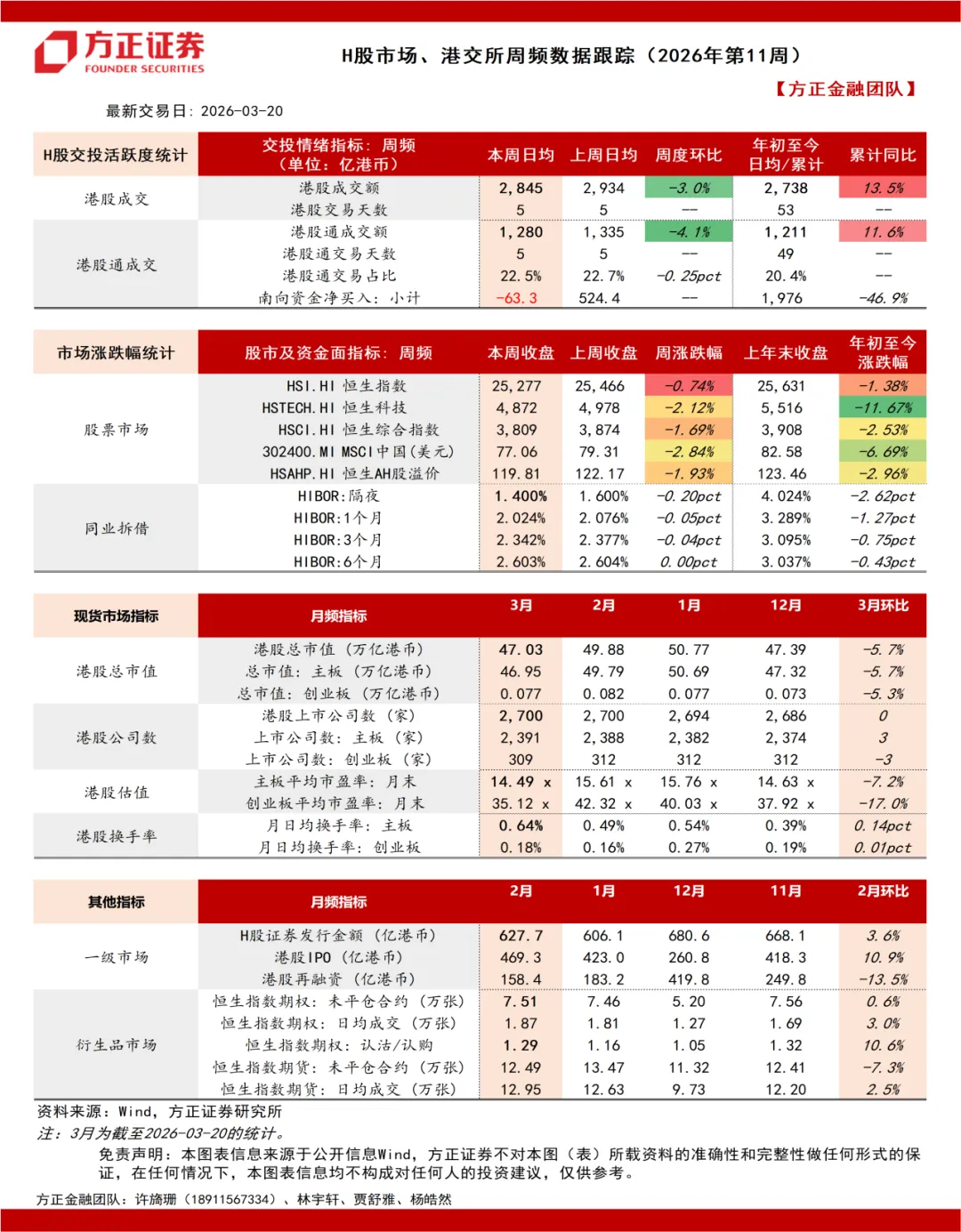H股市场、港交所周频数据跟踪(2026年第11周):