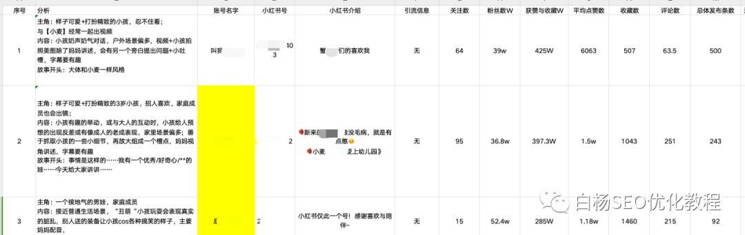 关注白杨SEO公众号,每周学习SEO与搞流量实战干货,与30000+人共同学习和成长! 作者:白杨SEO个人微信:baiyang2047全文2895字,预计阅读6分钟前言:这是公众号白杨SEO原创第499篇。为什么想到写这个?因为我在某社群看到有人分享小红书引流+各种行业一个导图大纲,网上搜索相关好像写的不多。同时,我之前也有说慢慢会把SEO结合各具体行业来分享大家。上面公众号封面这张配图,是白杨SEO本人在2018年拍摄华山悬空栈道。我本身非常喜欢旅游,结婚前全中国一个人基本快穷游走完了。回到本文主题,旅游行业小红书引流怎么做?这个话题分两个阶段看:第一个阶段是旅游行业在小红书上怎么搞到精准流量,第二个阶段才是旅游行业在小红书上怎么引流到私域去。本文主要分享第一个阶段,如果你想看第二个阶段,可以看我之前写的:小红书新规,粗暴导流或将被封号,私域玩家引流该怎么办?旅游行业小红书SEO操作方法1、挖掘整理用户需求搜索关键词我们知道,搞流量的本质是要吸引用户的注意力。如果你想要用你的内容吸引用户点击,那么,你就得了解用户需求,站在用户角度去生产内容。而潜在用户他们所有需求基本都是以搜索关键词的形式体现的。怎么找到旅游行业这些用户搜索需求关键词?第一步,确定你的业务核心关键词。比如“杭州旅游”、“出国旅游”“跟团旅游”等等。注意:这个要根据你自己的资源来,比如你擅长做某个城市或者某个类别的旅游,但千万不要把“旅游”当你的核心关键词!除非你是携程,你是去哪儿这种旅游平台。第二步,将这些核心关键词放到小红书搜索框(最好是小红书APP哈,我以PC端截图举例,下图),将核心关键词对应的下拉关键词整理出来。这个方法我们也叫以词找词,搜索框下拉这些词代表着用户经常搜索的词。对了,小技巧,离核心关键词下拉越近的词代表用户搜索越多,简单理解流量越大,嘿嘿。当然,你要是嫌弃这么搜索麻烦,你也可以用第三方工具。比如:小红书关键词搜索量查询、下拉词分析5118SEO工具。如果你觉得5118工具搜索量不准,也可以去投小红书聚光平台付费后台有找词工具哈。当然,白杨SEO建议你手动,为什么呢,因为你可以看看这些词排名靠前的内容长啥样,后面在小红书内容规划会用到。2、旅游行业小红书关键词SEO布局我们将第一步整理好的关键词进行归纳分类,筛选出你需要布局的哪些关键词,这些词决定了你后期的笔记选题以及怎么把这些词布局上去。如果你做的是本地流量的话,一些同城的关键词一定要用。比如杭州,甚至杭州西湖区等等。旅游行业小红书关键词SEO布局在哪些地方呢?我直接截图举例,可以布局在五个地方,最重要是标题、内容、以及话题标签上。对了,这里还有两个小核心:一是如果你不是视频笔记,那个图文笔记文案最好至少写300字以上,二是标题里不能堆积关键词,内容里的关键词密度一定要适中!3、旅游行业小红书笔记内容规划通过上面挖出用户需求搜索关键词,你已经对用户的内容偏好有了大致了解。这个时候,你可以分析潜在对标用户账号,你也可以将每个关键词下对应的爆款笔记搜集整理出来。举例,以前白杨SEO小红书训练营学员作业截图:可以从封面亮点、标题吸引点、内容结构SEO布局,以及笔记数据进行列表。比如去看封面,看的是拍摄构图、拍摄场景等;看标题看的关键词布局和吸引用户点击的关键词;看文案内容看的是关键词布局位置和整个笔记写作整体结构。以上,通过我们多看几个同行的笔记,我相信你肯定能看出来这个笔记是旅游者写的还是你的同行写的引流贴。如果连这个你都看不出来,你肯定不是旅游行业从业者!同行是你最好的老师!4、围绕用户需求关键词进行笔记SEO优化,提升笔记关键词排名小红书笔记SEO优化主要分发布前和发布后两个阶段。发布前的优化,主要见上在第二点说到的小红书SEO关键词布局,最少要布局在标题、内容和标签上都有要有。同时,你如果要做同城的流量。一定要在笔记中打上同城标签,在封面图发布上传时打上同城标签,在点击发布前带上标记同城位置就可以了。笔记发布后的小红书SEO优化,主要就是看用户需求搜索关键词下的笔记排名。比如搜“杭州旅游一日游”看你的笔记是否在前10位。你的笔记越靠前,被用户点的概率越大,给你带来的搜索流量越大。如果你的笔记根本没有,说明你第一个工作没做到位,就是让笔记被小红书收录!怎么代表收录,用你小红书标题全标题搜,如果有就算收录。如图:如果你的笔记排名很靠后,说明笔记还没上来,记住一个小红书SEO核心点,在小红书发布六小时内给小红书做一些真实数据。小红书笔记里除了标题内容标签之外最重要的有阅读、点赞、收藏、转发、评论等。以前是转发占比大,现在是评论,懂得人懂。另外,这里再补充一下,除了用你自己的帐号做多个笔记排名占位之外,你还可以针对性地通过小红书达人种草来铺设你的笔记。当然这是要付费的方法之一,下面要再讲一讲。旅游行业小红书付费投放结合方法这里先声明,白杨SEO并不是很擅长付费投放,也不是氪金玩家,我相信你也不是。但是,付费投放可以帮我们测小红书内容,可以测是不是适合推广。小红书付费投放具体分三种玩法:第一种:素人小红书账号发贴布局关键词,上面有讲。你可以去小红书官方平台蒲公英上找达人,你也可以