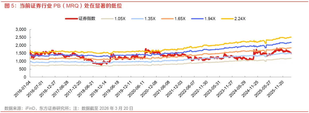 在PB-ROE估值框架下,券商估值中枢通常取决于ROE修复的持续性及市场对其可持续性的认可程度。我们认为,当前板块股价仍然承压,更多反映市场对成交和增量资金持续性的谨慎定价,而非对盈利趋势本身的否定。若后续市场交投活跃度维持高位、两融和增量资金继续改善,券商ROE上行有望进一步向PB修复传导,推动板块估值由当前低位向历史中枢回归。