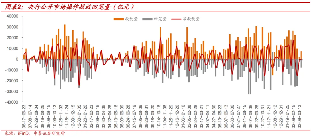 本周(3.16-3.20,下同)共有1765亿元逆回购到期。周一至周五央行分别投放逆回购1373、510、205、130、205亿元,期间累计投放2423亿元逆回购;周一分别有5000亿元和6000亿元买断式逆回购投放和到期;全周净回笼流动性342亿元。下周三有4500亿元MLF到期。