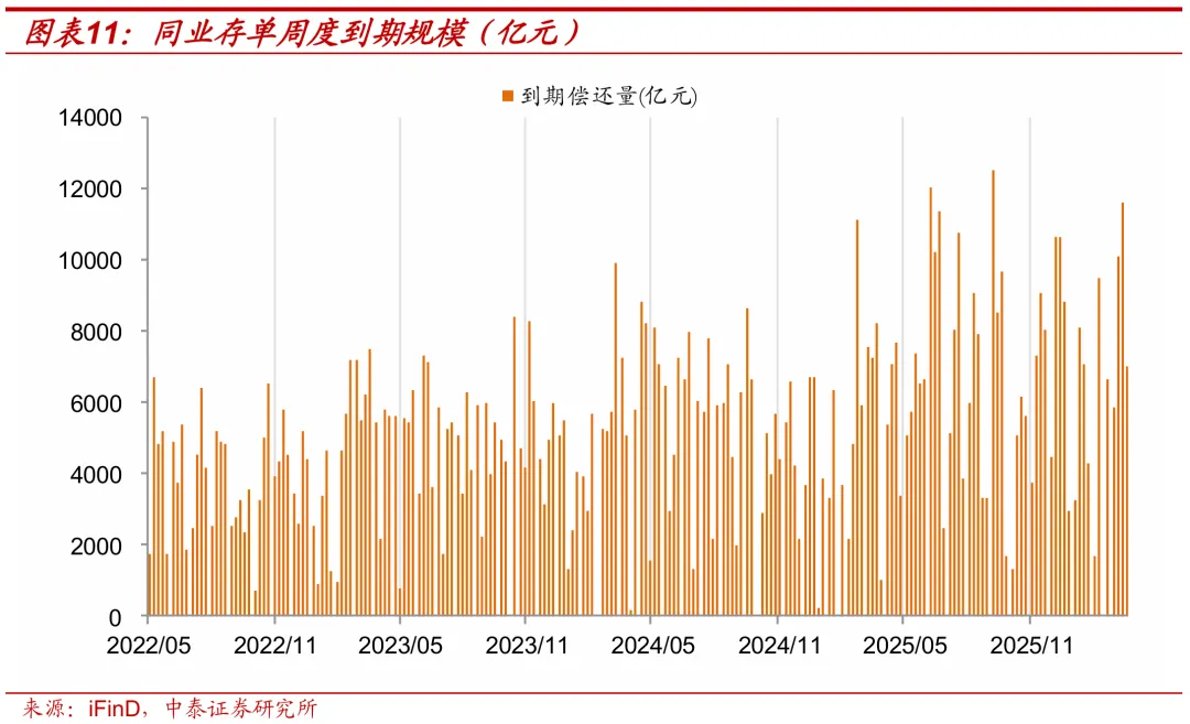 本周存单到期量增加。到期总量11628.6亿元,较上周增加1546.6亿元。新一周(3/22-3/29)存单到期6982.0亿元。