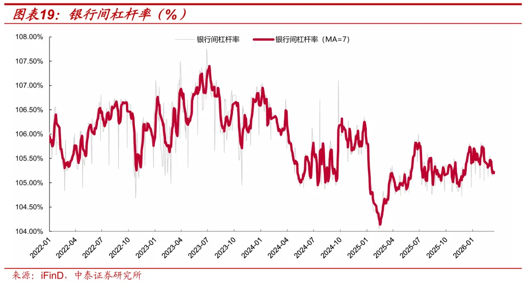 银行间杠杆率环比小幅下行。截至3月20日,债市银行间总杠杆率较3月13日下行0.05个百分点至105.23%,位于2021年以来19.90%历史分位数水平。
