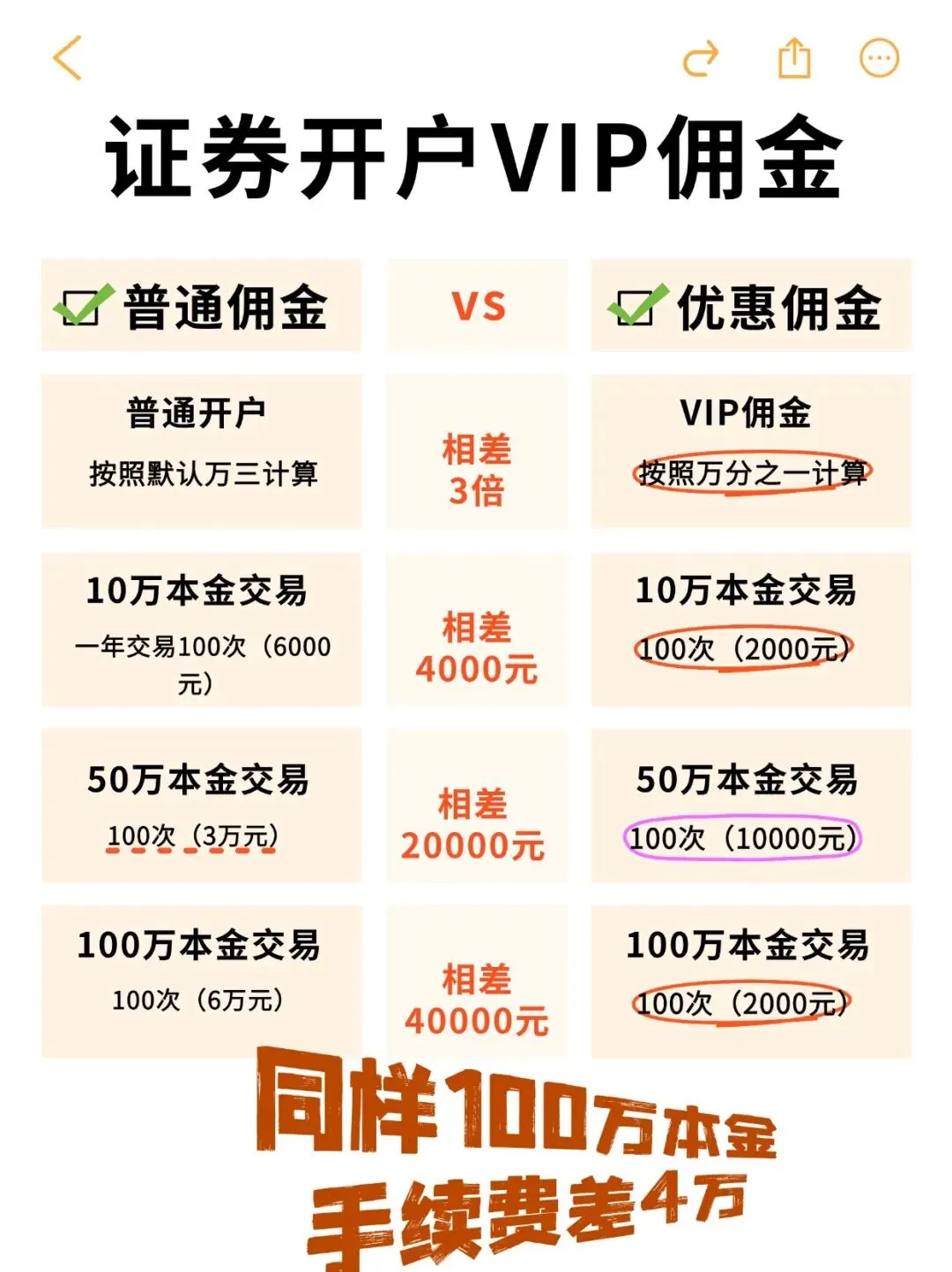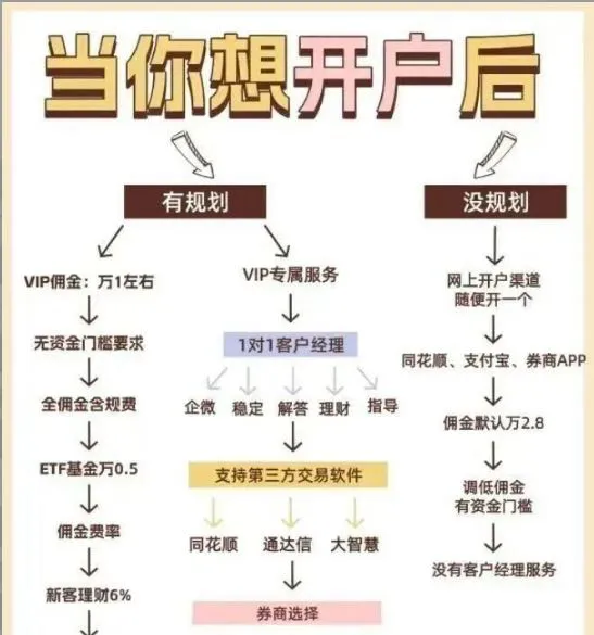 因为这样开出来是一般默认费率万三甚至更高,而且没有专门的客户经理对接,经常有事都找不到人,还是挺麻烦,最主要是到时候调整佣金也不方便,要有资金门槛等要求,咱们得找到 VIP 开户渠道,能省不少钱呢!