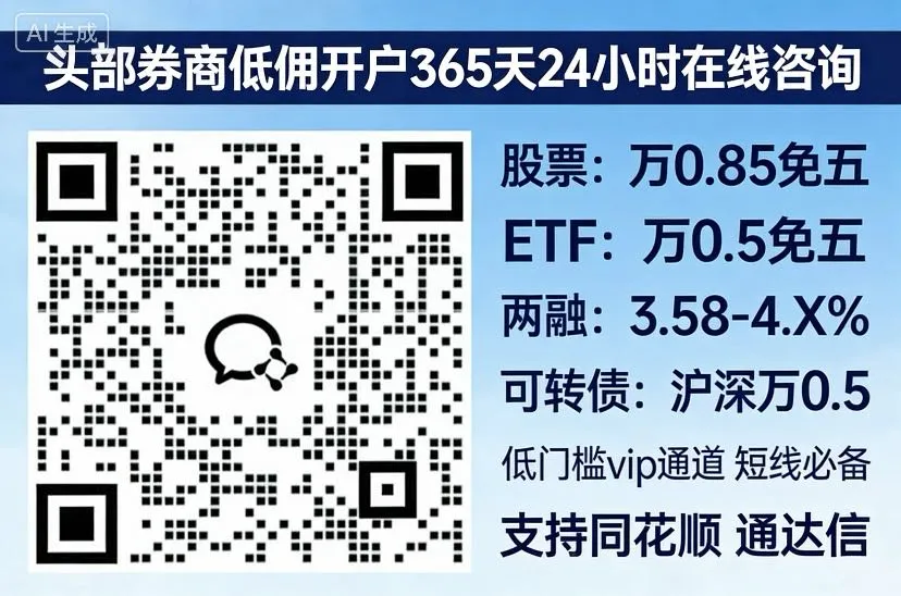 🎁福利:扫码添加私信,备注“VIP开户”,即可获取央企头部券商沪深A股万一,ETF基金万分之0.6超低佣金账户