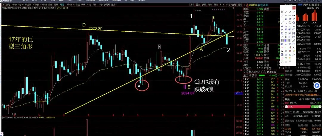 不过看看我图中标的点位,很多人在2024年7月也是在等中信证券破2022年10月的价格,当时券商指数是破了!但中信证券最低16.07元,离2022年10月的最后15.27元还是有一定差距!所以,我也不能肯定中信证券A能不能破,都不重要了,因为已经在里面了!