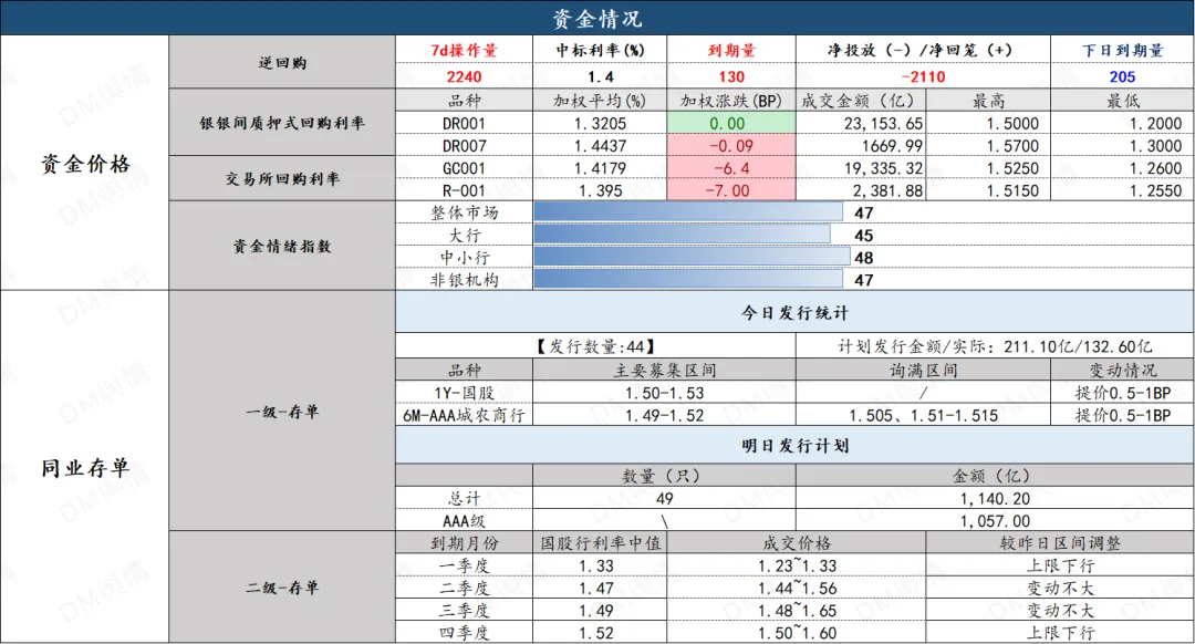 二级市场:二级存单收益率多数上下不一,1Y国股行存单收益率成交区间为1.5125%-1.5425%。