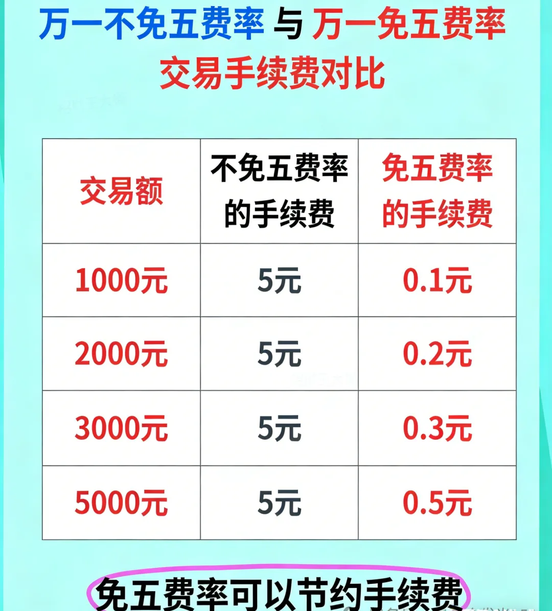 “免五”是为散户量身打造的福利条款:取消每笔5元的佣金最低收费限制,对小额、高频交易者来说,差距极大。