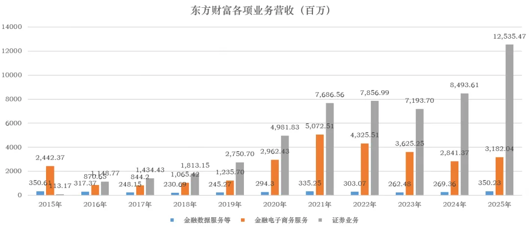 根据年报显示,东方财富共有三块业务: