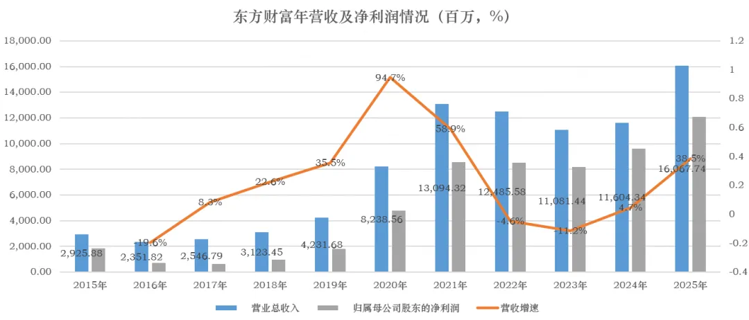 2026年3月19日晚,东方财富公布了2025年年报,净利润同比增长26%!