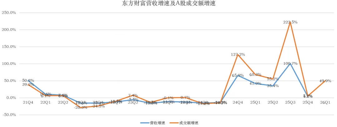 如果从2025年业绩来看,东财的营收增长了38%,净利润增长了26%,似乎还不错!