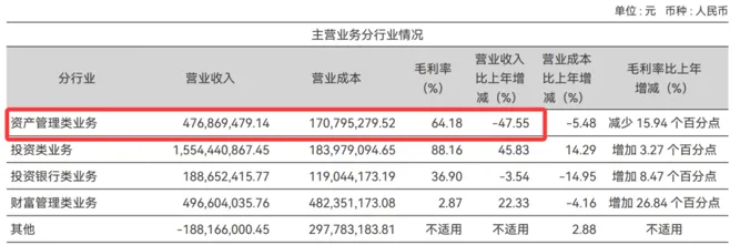 但是其传统优势业务——资管类业务却大幅下滑,仅实现营业收入4.77亿元,同比下降47.55%。