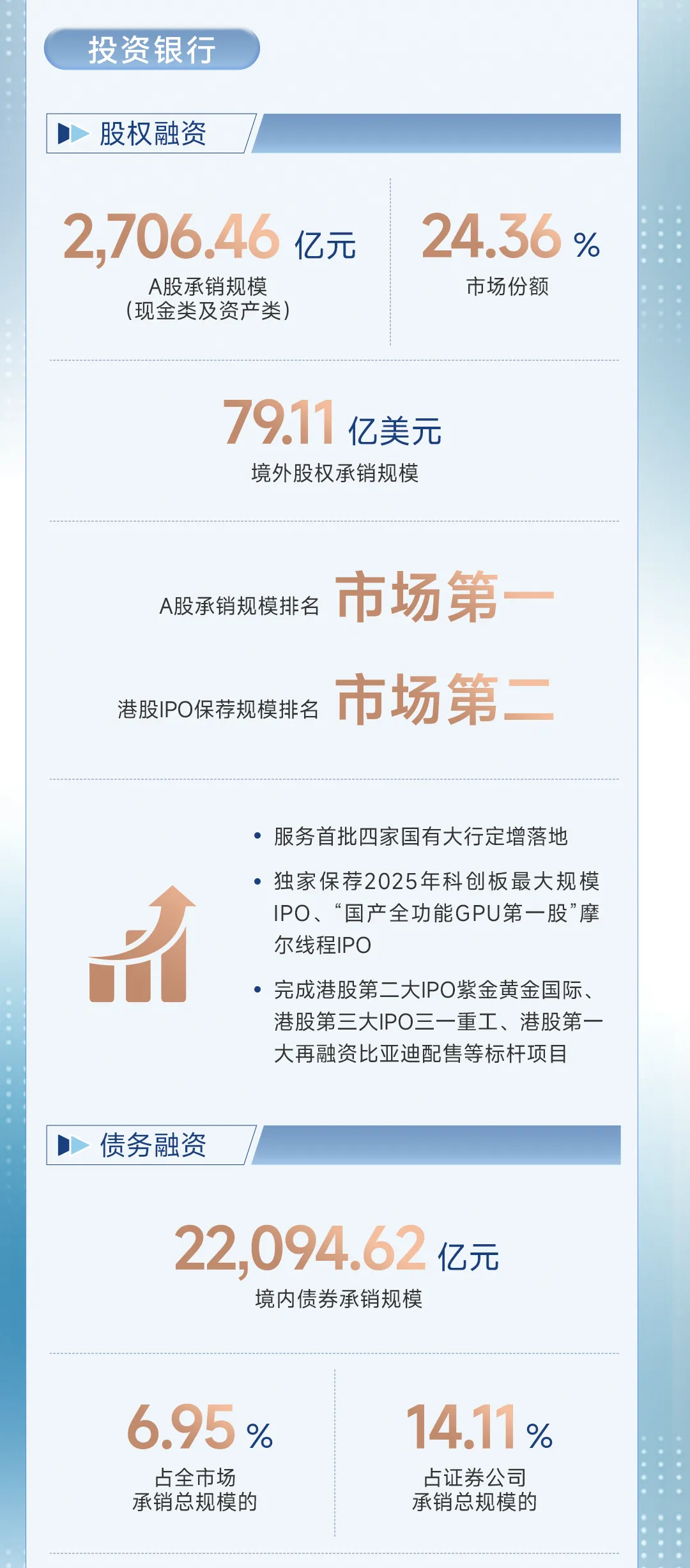 收入60.55亿元,但增速最快,高达50.12%。2025年IPO和再融资市场回暖,中信证券作为“投行老大”,独家保荐了摩尔线程这样的“国产GPU第一股”,还参与了四大国有银行的巨额定增,赚足了佣金和口碑。