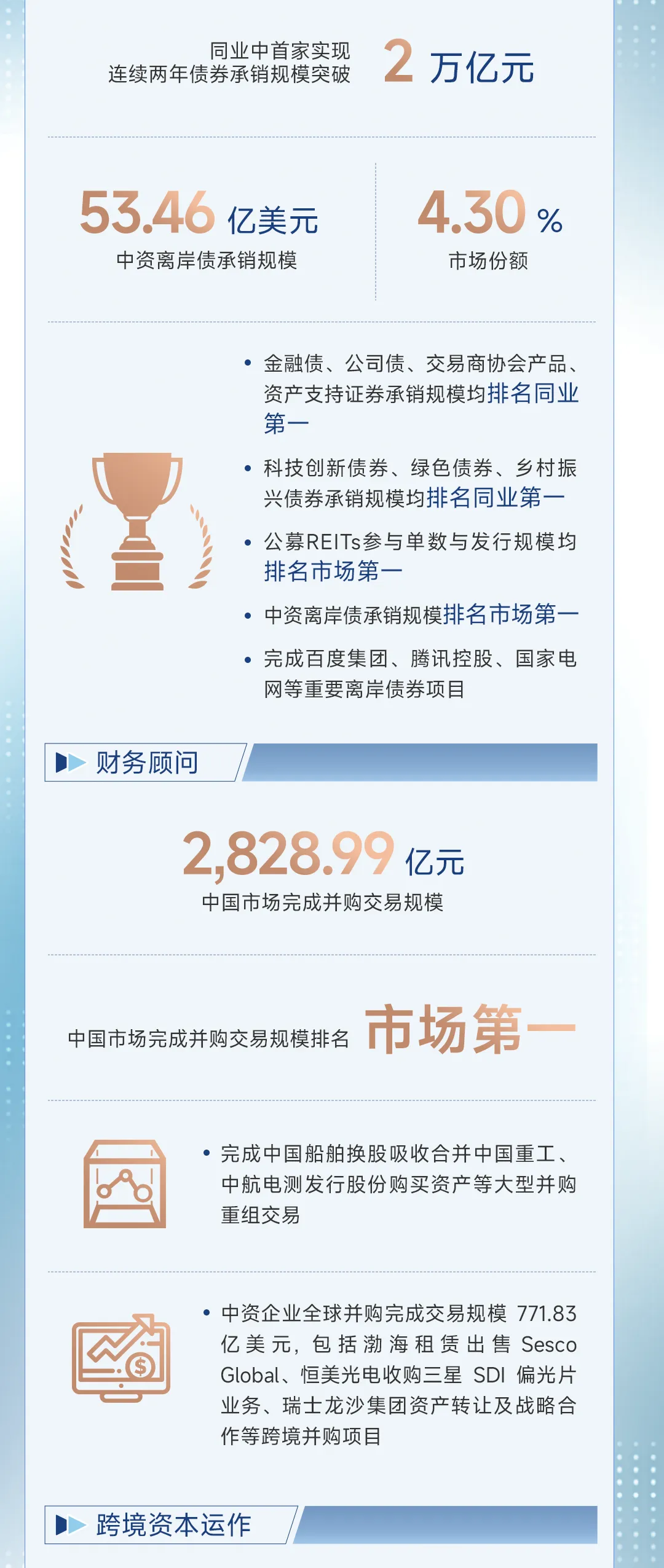 国际化做得好:境外业务收入155亿元,增长41.75%。在香港、东南亚、甚至中东,他们都帮中国企业“走出去”融资、并购,也把国际资本“引进来”,赚了全世界的钱。