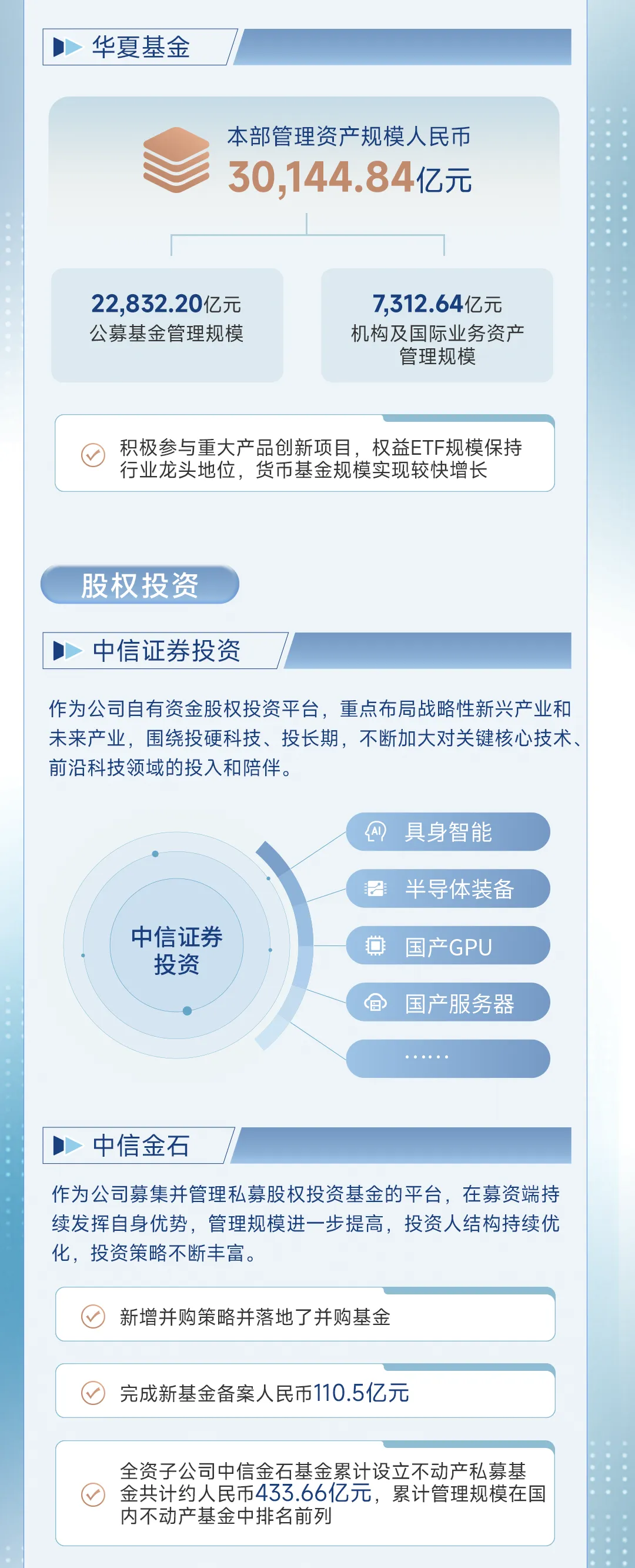 紧跟国家战略:公司专门讲了如何做好“科技金融、绿色金融、普惠金融、养老金融、数字金融”这五篇大文章。比如,他们重点投资硬科技公司、发行绿色债券、帮老百姓管养老金,这些不仅符合政策方向,也带来了实实在在的优质项目。