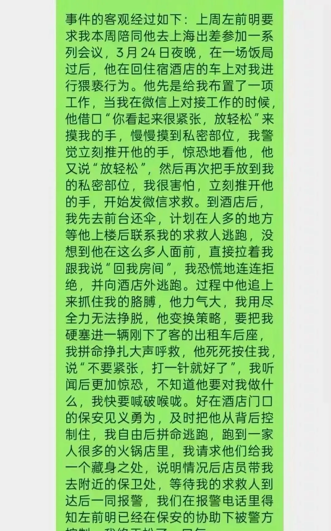 白天开会、参加饭局,一切都看似正常,左前明举止得体,没有半点越界举动,完全是平日里的精英做派。