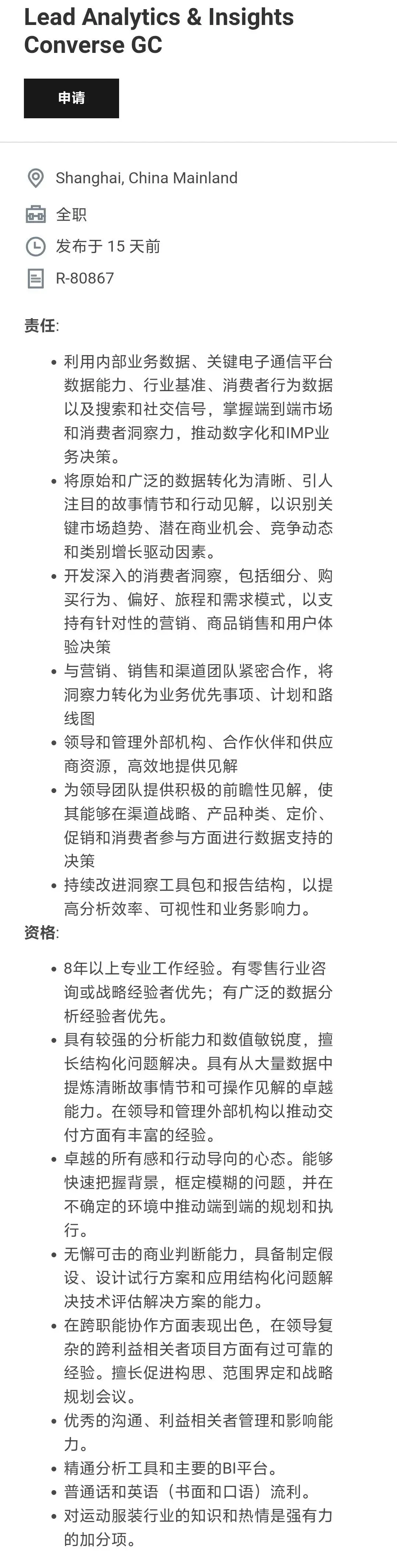 https://nike.wd1.myworkdayjobs.com/zh-CN/nke/job/Shanghai-China-Mainland/Lead-Analytics---Insights-Converse-GC_R-80867