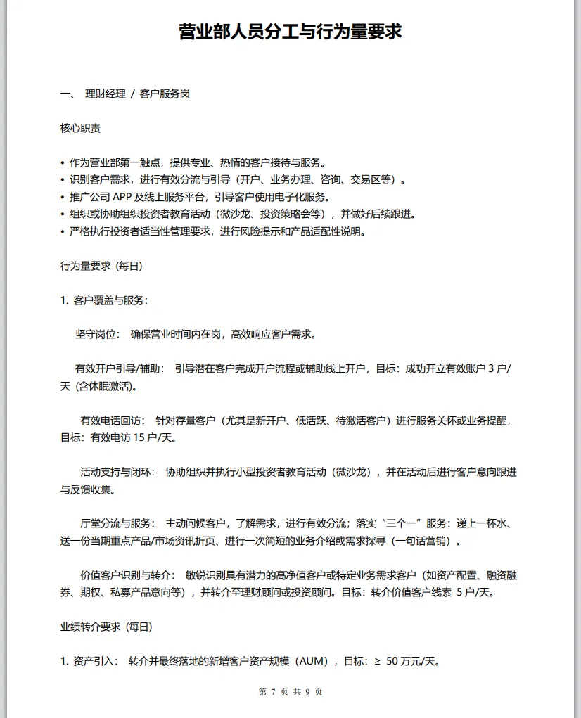 还有每天转介5个“价值客户”(标准是账户余额达标、有买基金/理财潜力的);