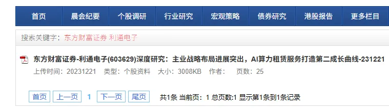 产出:一篇“强烈推荐买入”的研报《东方财富证券-利通电子深度研究:主业战略布局进展突出,AI算力租赁服务打造第二成长曲线》,企图把股价吹上天。