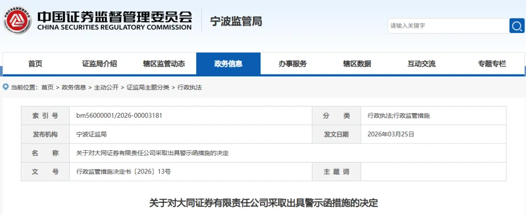 关于对大同证券有限责任公司采取出具警示函措施的决定