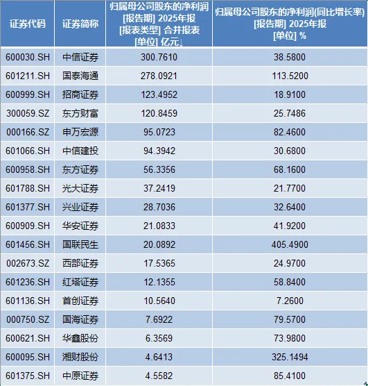 增幅方面,18家上市券商2025年的净利润全部实现正增长。