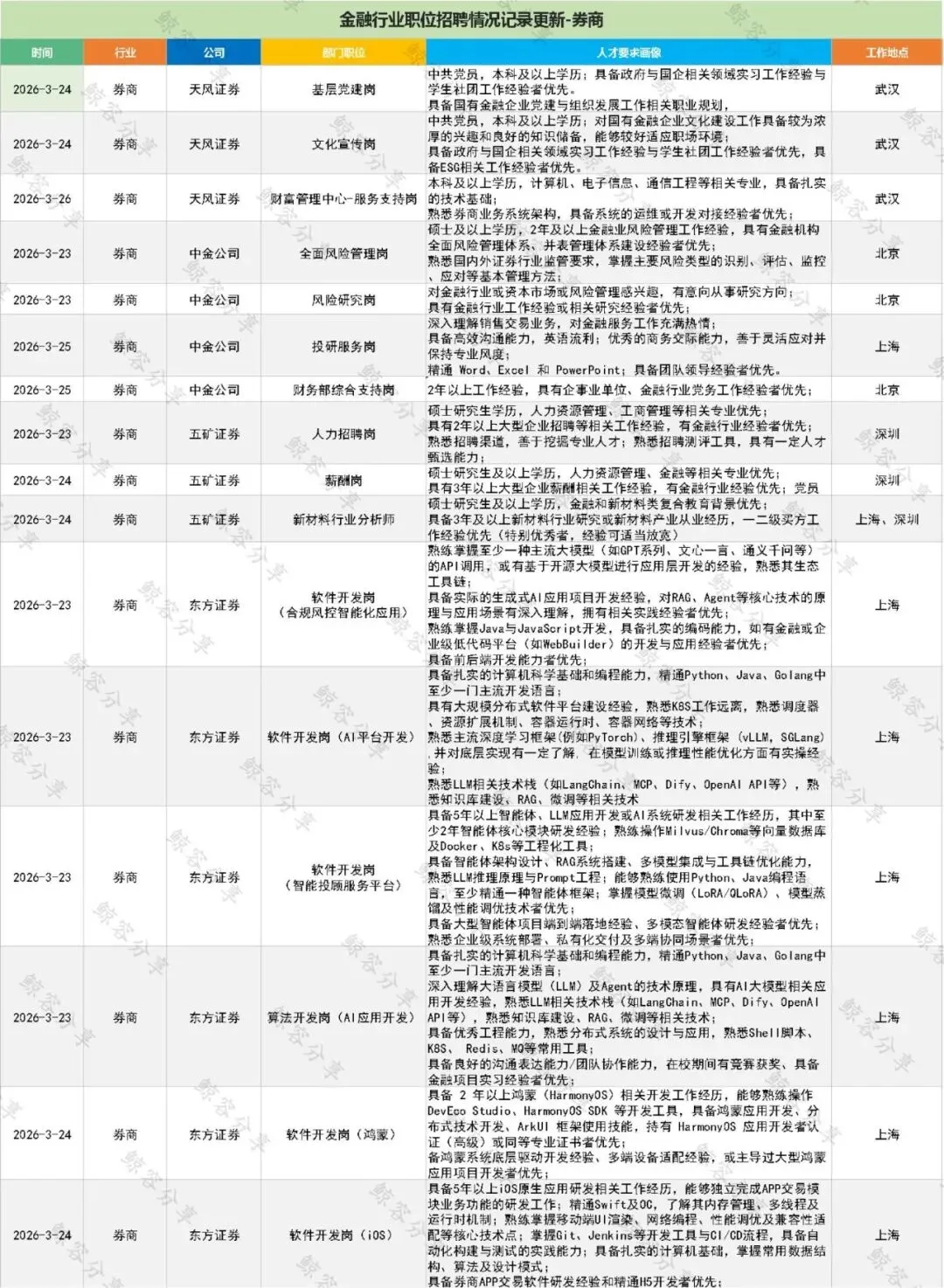 一周金融行业招聘动态收集—券商260329鲸容百晓生Human Resources关于我们专注金融领域咨询,持续收集和分享金融机构的招聘动态。以券商为核心,辐射公募、私募、银行、保险等金融行业领域。提供价值、整合资源、相互赋能。致力成为金融机构和金融人才交流资源和价值互换的桥梁一周金融机构招聘动态收集-券商END更多行业动态咨询,敬请点赞关注,我们将持续跟新素材来源官方媒体/网络新闻