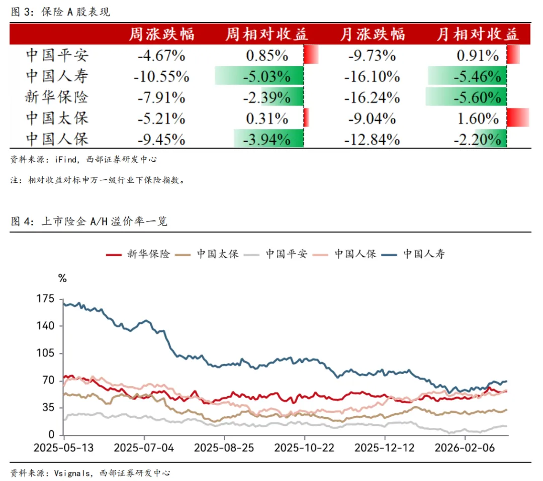 1)保险:本周保险Ⅱ(申万)-5.52%,跑输沪深300指数4.11pct。本周上市险企2025年年报全部披露,整体呈现全年投资驱动净利润高增、Q4受股市波动承压,寿险价值与新单增长亮眼、财险成本持续改善的格局。我们坚定认为,保险行业资产负债两端改善的长期核心逻辑未发生根本性变化,短期板块调整更多系市场情绪错杀所致,随着情绪修复与基本面催化落地,板块有望迎来估值与业绩的双重修复,长期配置价值显著。