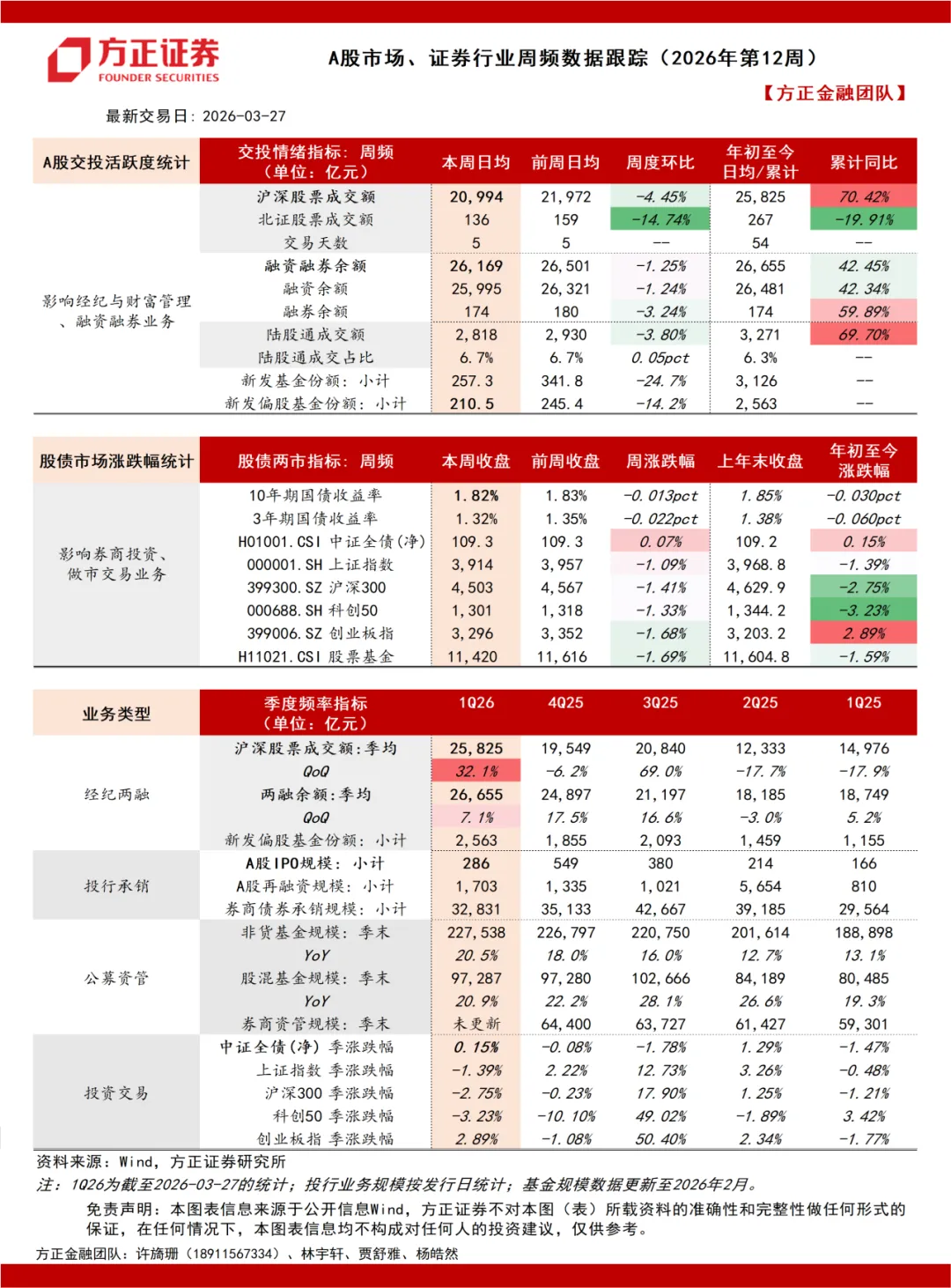 A股市场、证券行业周频数据跟踪(2026年第12周):