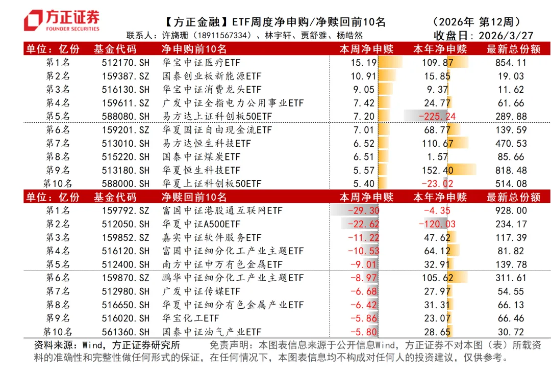 ETF净申赎周度数据跟踪(2026年第12周):