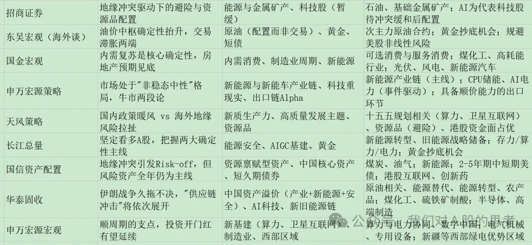 各行业观点更新