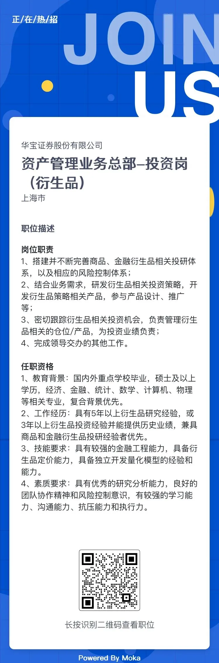 券商社招 | 华宝证券资管部最新社会招聘