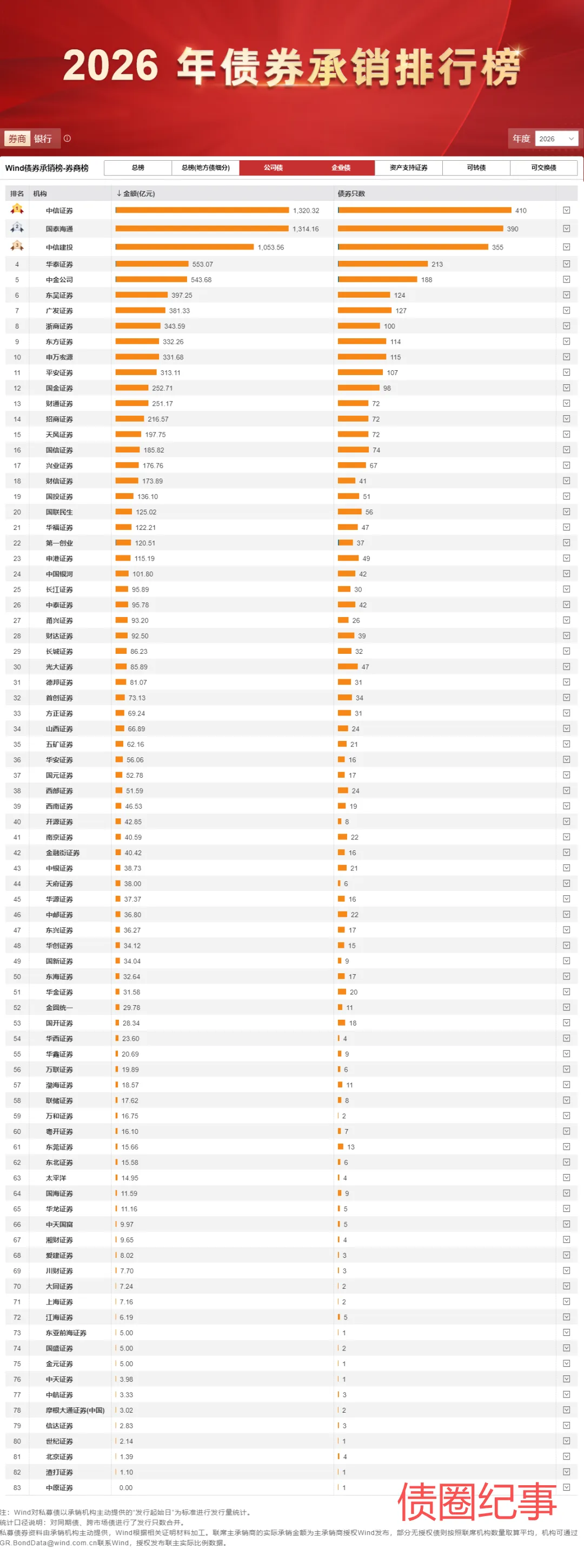 一季度券商ABS及公司债承销排名!