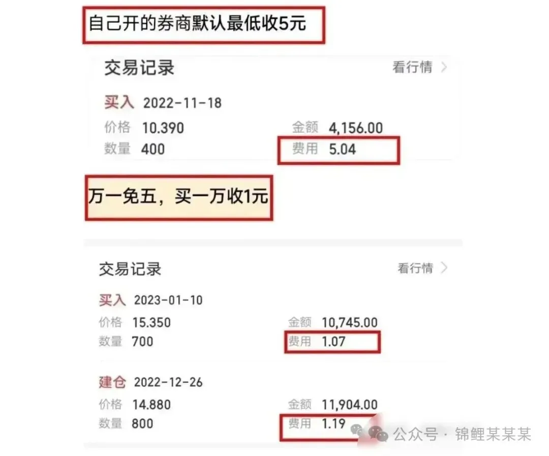 宣传“免五”,但开户后交易发现,仍按5元最低收费扣款,或设置1元/3元变相最低收费,属于虚假宣传,且后续无法调整费率!