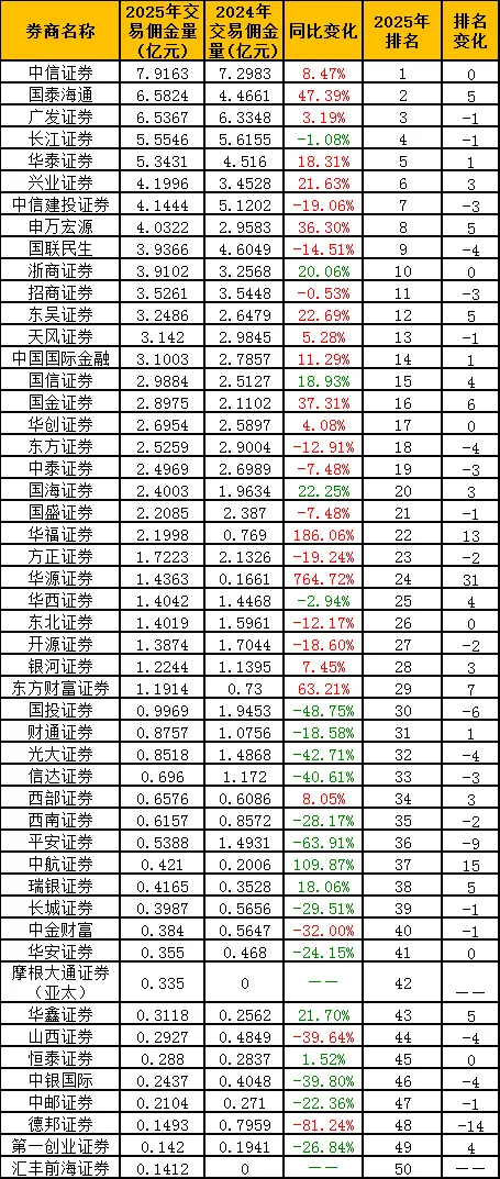附:2025年券商分仓佣金收入前50名