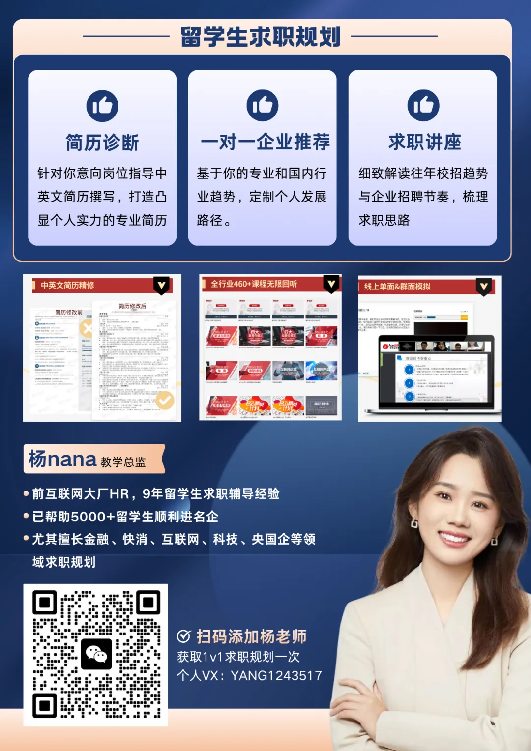 咱留学生的英语优势和国际视野,在这里就是“加分项”,比国内应届生更有竞争力。