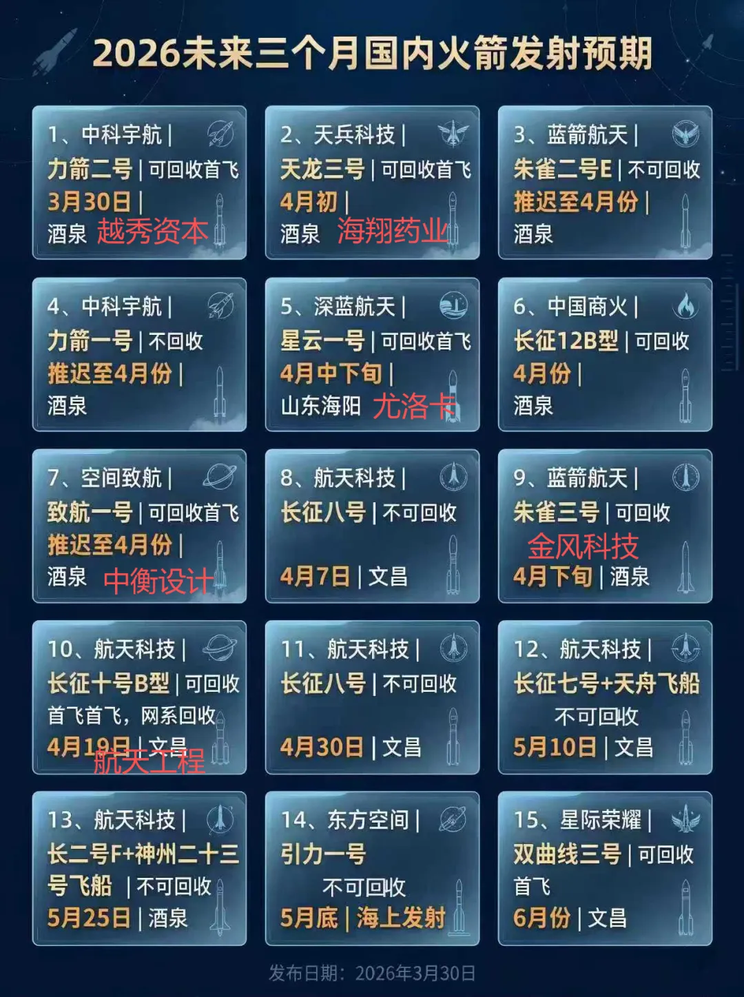 - 4月超强催化:天龙三号、长征八号、SpaceX星舰V3首飞,发射密集+板块超跌,反弹一触即发
