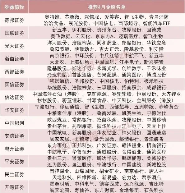 一、2026 年 4 月券商金股推荐全景扫描