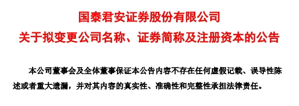 早在3月16日晚,国泰君安与海通证券正式发布合并重组完成等一系列公告。经国家市场监督管理总局预核准,“国泰海通”这一新名称正式敲定。同时,两家券商的客户及业务迁移合并情况也进行了有序安排。