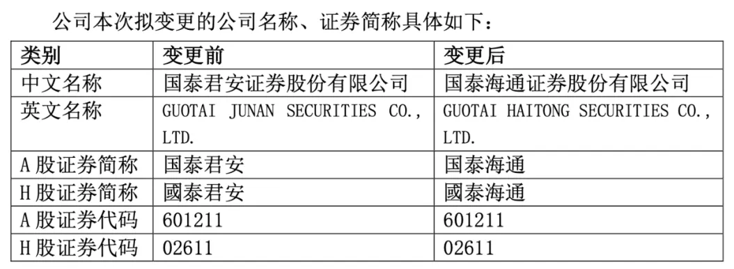 4月11日上午,国泰海通证券在上海证券交易所举行重组更名上市仪式,公司A股证券简称正式变更为“国泰海通”。