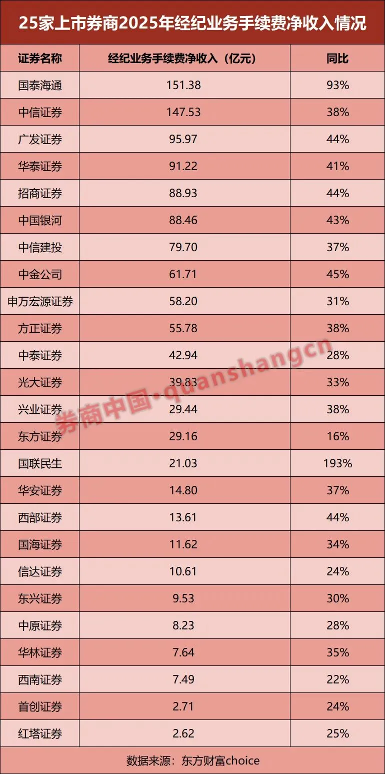 上市券商2025年业绩爆发,基本跟财富管理、自营、投行等业务提振有关。尤其是财富管理业务,受益于市场交投活跃,不少券商的新开户、交易佣金、产品代销规模等指标实现增长。