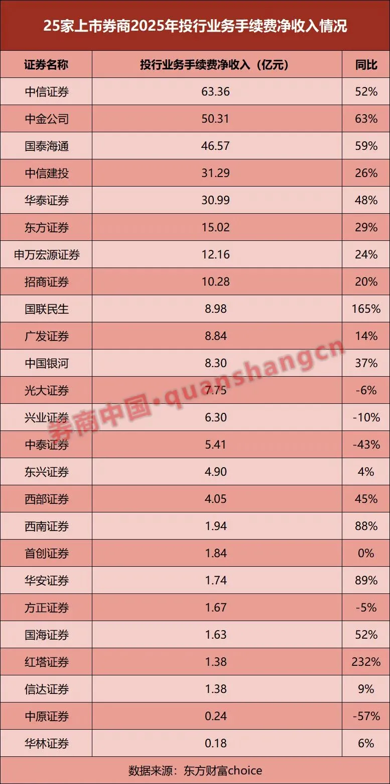 整体看,中小券商的弹性显得更高,2025年投行业务手续费净收入同比增幅超50%的8家券商中,华安证券、西南证券、国海证券等中小券商占据5席,红塔证券的增幅甚至超过2倍。