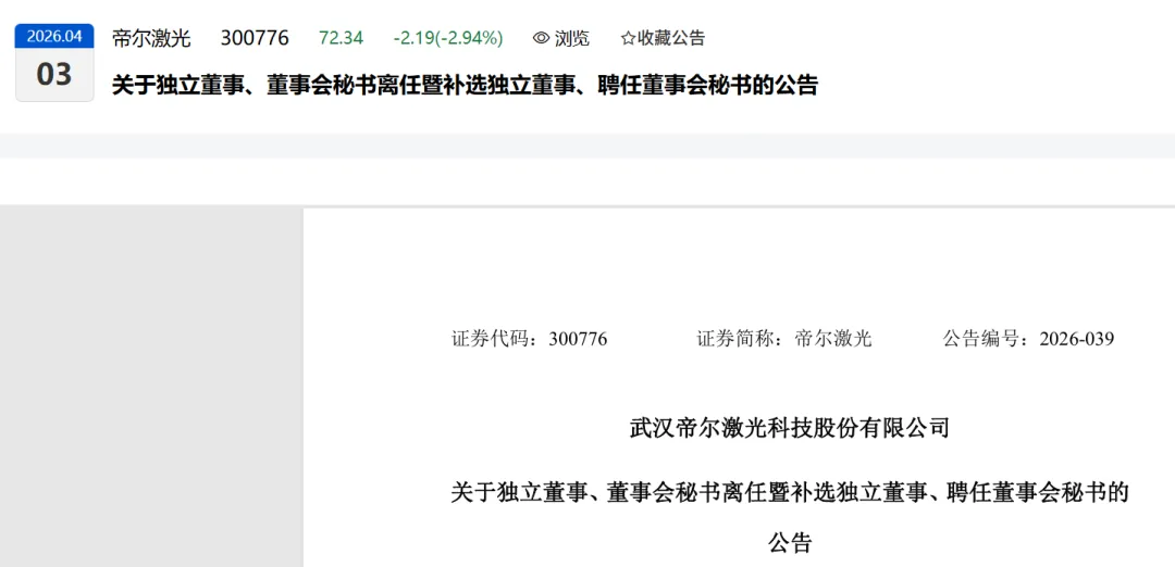 武汉帝尔激光科技股份有限公司(以下简称“公司”)董事会于2026年3月10日收到独立董事吴裕斌先生提交的书面辞职报告,吴裕斌先生因个人原因申请辞去公司第四届董事会独立董事、董事会提名委员会委员及薪酬与考核委员会委员的职务,辞职后不再担任公司任何职务。吴裕斌先生原定任期至第四届董事会任期届满之日止。